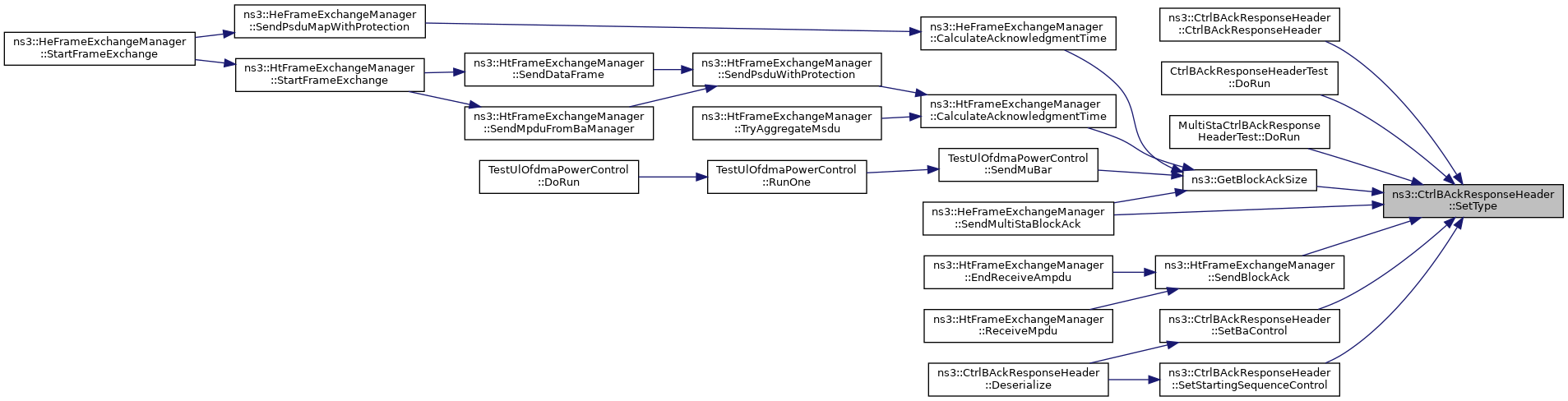 Here is the caller graph for this function:| void ns3::CtrlBAckResponseHeader::SetType | ( | BlockAckType | type | ) |