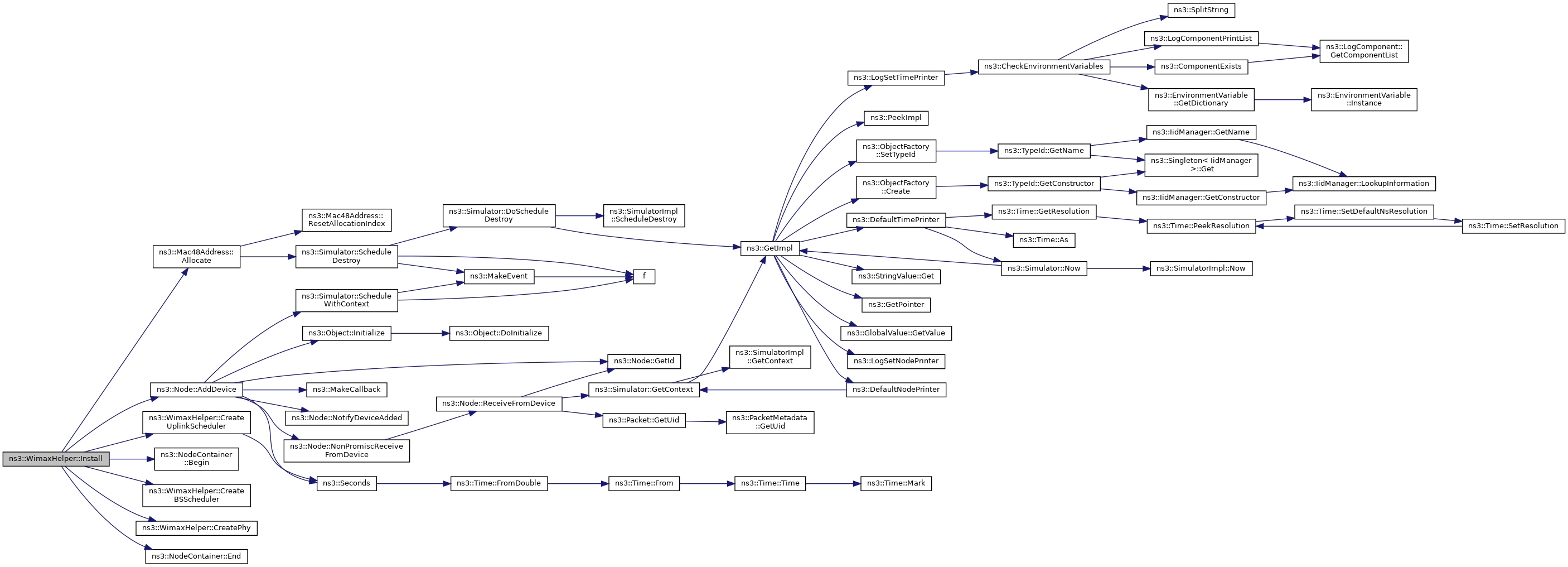 Here is the call graph for this function:| NetDeviceContainer ns3::WimaxHelper::Install | ( | NodeContainer | c, |