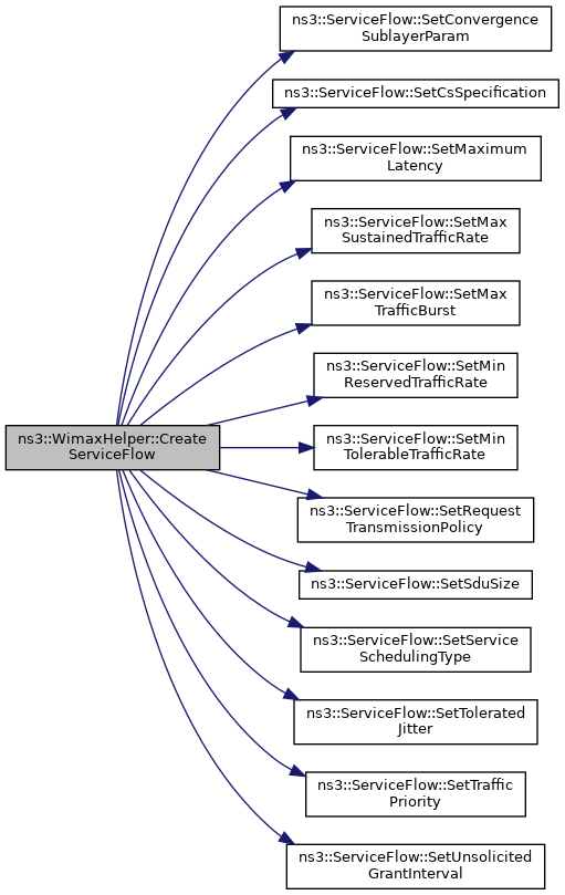 | ServiceFlow | CreateServiceFlow (ServiceFlow::Direction direction, ServiceFlow::SchedulingType schedulinType, IpcsClassifierRecord classifier) |