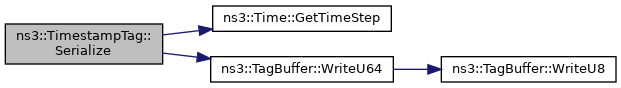 References ns3::Time::GetTimeStep(), m_timestamp, and ns3::TagBuffer::WriteU64().