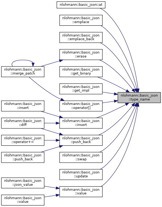 | JSON_HEDLEY_RETURNS_NON_NULL const char * | type_name () const noexcept |