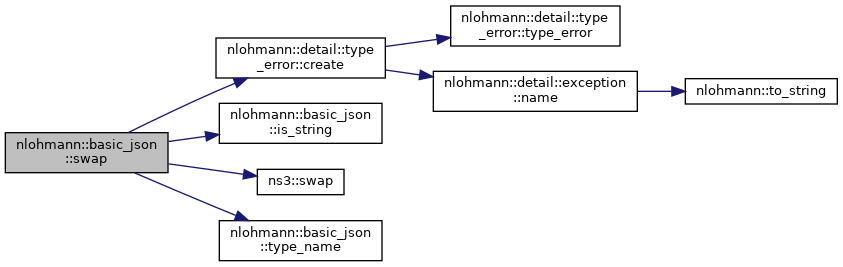 Exchanges the contents of the JSON value from left with those of right. Does not invoke any move, copy, or swap operations on individual elements. All iterators and references remain valid. The past-the-end iterator is invalidated. implemented as a friend function callable via ADL.