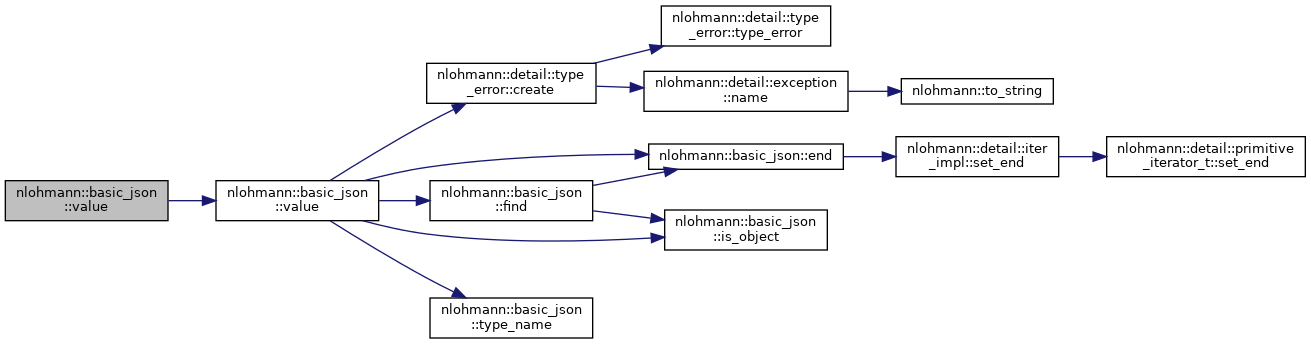 | ValueType | type compatible to JSON values, for instance int for JSON integer numbers, bool for JSON booleans, or std::vector types for JSON arrays. Note the type of the expected value at key and the default value default_value must be compatible. |