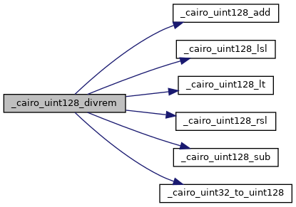 Here is the caller graph for this function:| cairo_uquorem128_t cairo_I _cairo_uint128_divrem | ( | cairo_uint128_t | num, |