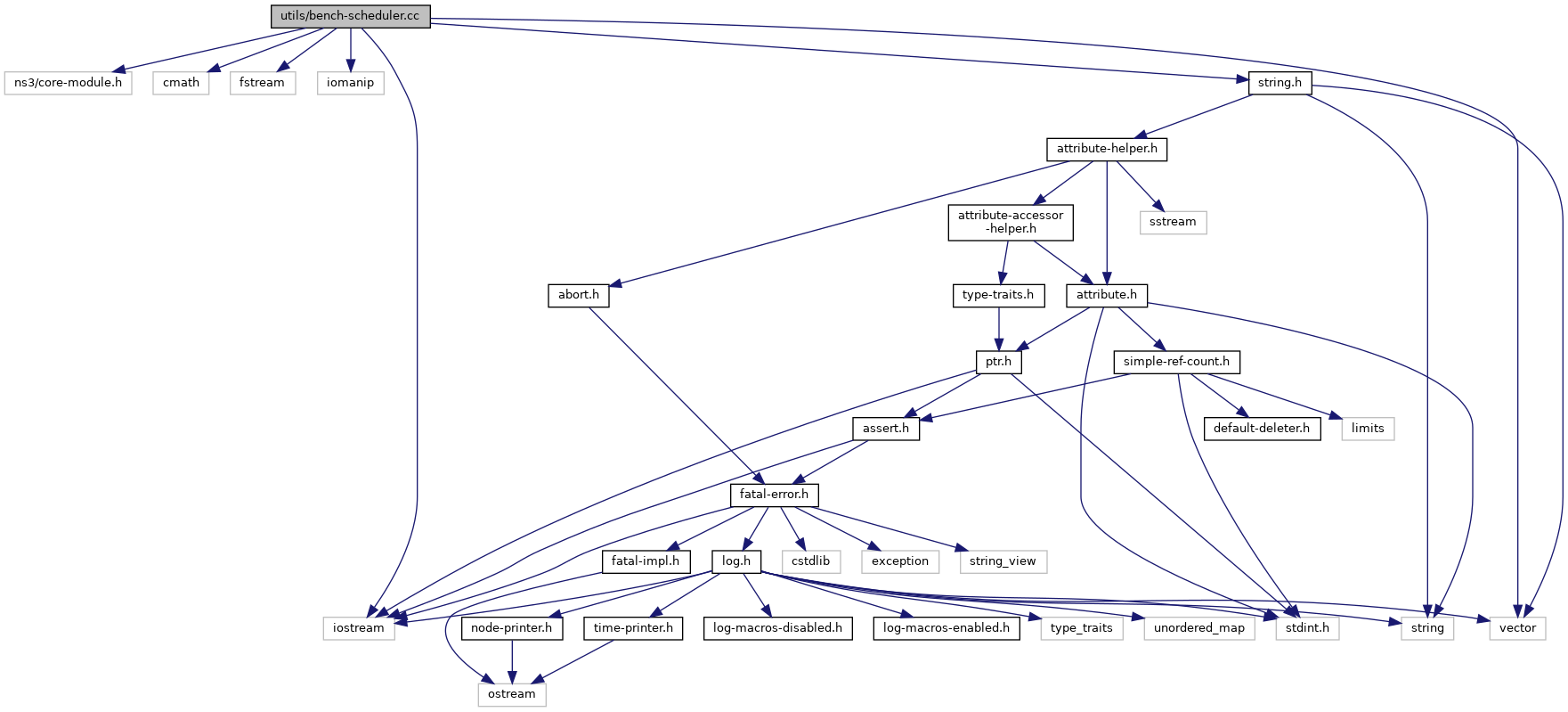 Include dependency graph for bench-scheduler.cc:Go to the source code of this file.