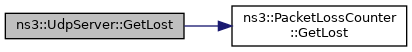 Here is the call graph for this function:| uint32_t ns3::UdpServer::GetLost | ( | ) | const |