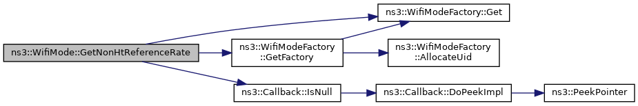 References ns3::WifiModeFactory::Get(), ns3::WifiModeFactory::GetFactory(), ns3::WifiModeFactory::WifiModeItem::GetNonHtReferenceRateCallback, ns3::Callback< R, UArgs >::IsNull(), m_uid, and NS_ASSERT_MSG.
