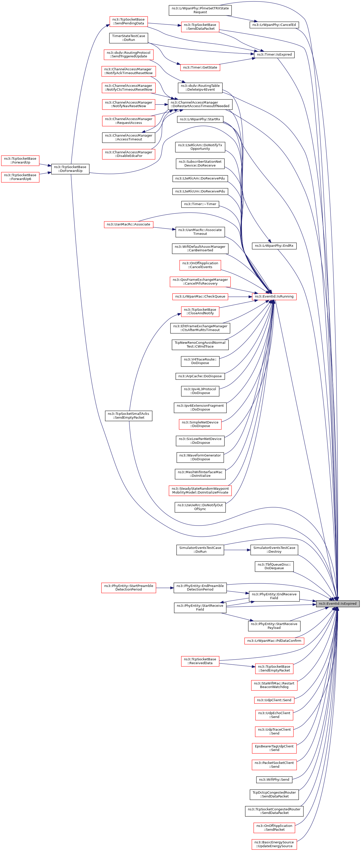 Referenced by ns3::LrWpanPhy::CancelEd(), ns3::dsdv::RoutingTable::DeleteIpv4Event(), SimulatorEventsTestCase::Destroy(), ns3::TbfQueueDisc::DoDequeue(), ns3::TcpSocketBase::DoForwardUp(), ns3::ChannelAccessManager::DoRestartAccessTimeoutIfNeeded(), SimulatorEventsTestCase::DoRun(), ns3::PhyEntity::EndPreambleDetectionPeriod(), ns3::PhyEntity::EndReceiveField(), ns3::LrWpanPhy::EndRx(), ns3::Timer::IsExpired(), IsRunning(), ns3::LrWpanMac::PdDataConfirm(), ns3::LrWpanPhy::PlmeSetTRXStateRequest(), ns3::TcpSocketBase::ReceivedData(), ns3::StaWifiMac::RestartBeaconWatchdog(), ns3::UdpClient::Send(), ns3::UdpEchoClient::Send(), ns3::UdpTraceClient::Send(), EpsBearerTagUdpClient::Send(), ns3::PacketSocketClient::Send(), ns3::WifiPhy::Send(), ns3::TcpSocketBase::SendDataPacket(), TcpDctcpCongestedRouter::SendDataPacket(), ns3::TcpSocketCongestedRouter::SendDataPacket(), ns3::TcpSocketBase::SendEmptyPacket(), ns3::TcpSocketSmallAcks::SendEmptyPacket(), ns3::OnOffApplication::SendPacket(), ns3::PhyEntity::StartReceiveField(), ns3::PhyEntity::StartReceivePayload(), ns3::LrWpanPhy::StartRx(), and ns3::BasicEnergySource::UpdateEnergySource().
