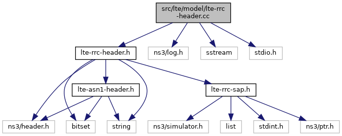 Include dependency graph for lte-rrc-header.cc:Go to the source code of this file.