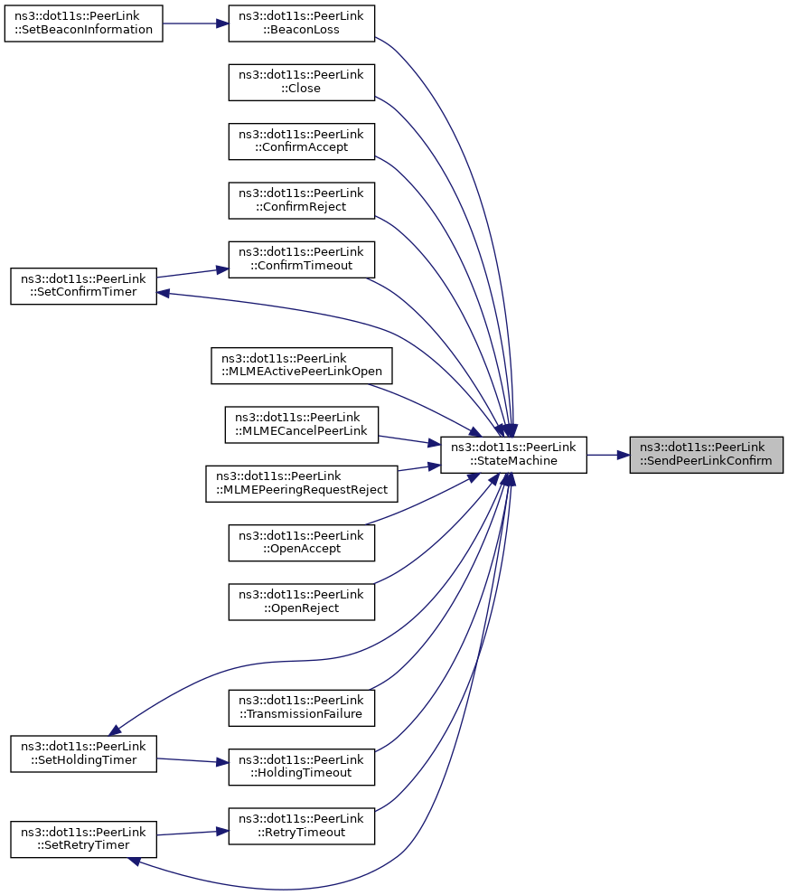 References ACTOPN, ClearConfirmTimer(), ClearHoldingTimer(), ClearRetryTimer(), CLS_ACPT, CNCL, CNF_ACPT, CNF_RCVD, CNF_RJCT, ESTAB, ns3::Mac48Address::GetBroadcast(), HOLDING, IDLE, m_interface, m_linkStatusCallback, m_peerAddress, m_peerMeshPointAddress, m_retryCounter, m_state, NS_ASSERT, OPN_ACPT, OPN_RCVD, OPN_RJCT, OPN_SNT, ns3::dot11s::REASON11S_MESH_CLOSE_RCVD, ns3::dot11s::REASON11S_MESH_CONFIRM_TIMEOUT, ns3::dot11s::REASON11S_MESH_MAX_RETRIES, ns3::dot11s::REASON11S_PEERING_CANCELLED, REQ_RJCT, SendPeerLinkClose(), SendPeerLinkConfirm(), SendPeerLinkOpen(), SetConfirmTimer(), SetHoldingTimer(), SetRetryTimer(), TOC, TOH, TOR1, and TOR2.