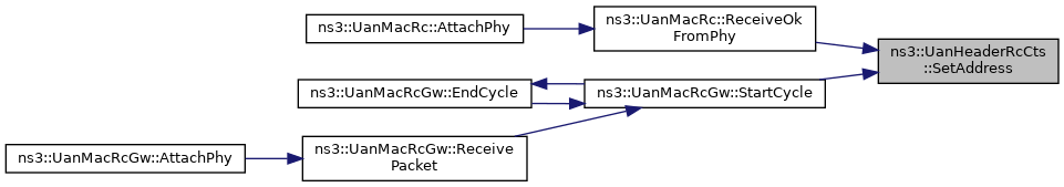 Here is the call graph for this function:| void ns3::UanHeaderRcCts::SetAddress | ( | Mac8Address | addr | ) |