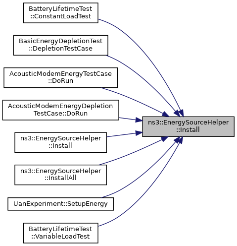 Referenced by BatteryLifetimeTest::ConstantLoadTest(), BasicEnergyDepletionTest::DepletionTestCase(), AcousticModemEnergyTestCase::DoRun(), AcousticModemEnergyDepletionTestCase::DoRun(), Install(), InstallAll(), UanExperiment::SetupEnergy(), and BatteryLifetimeTest::VariableLoadTest().