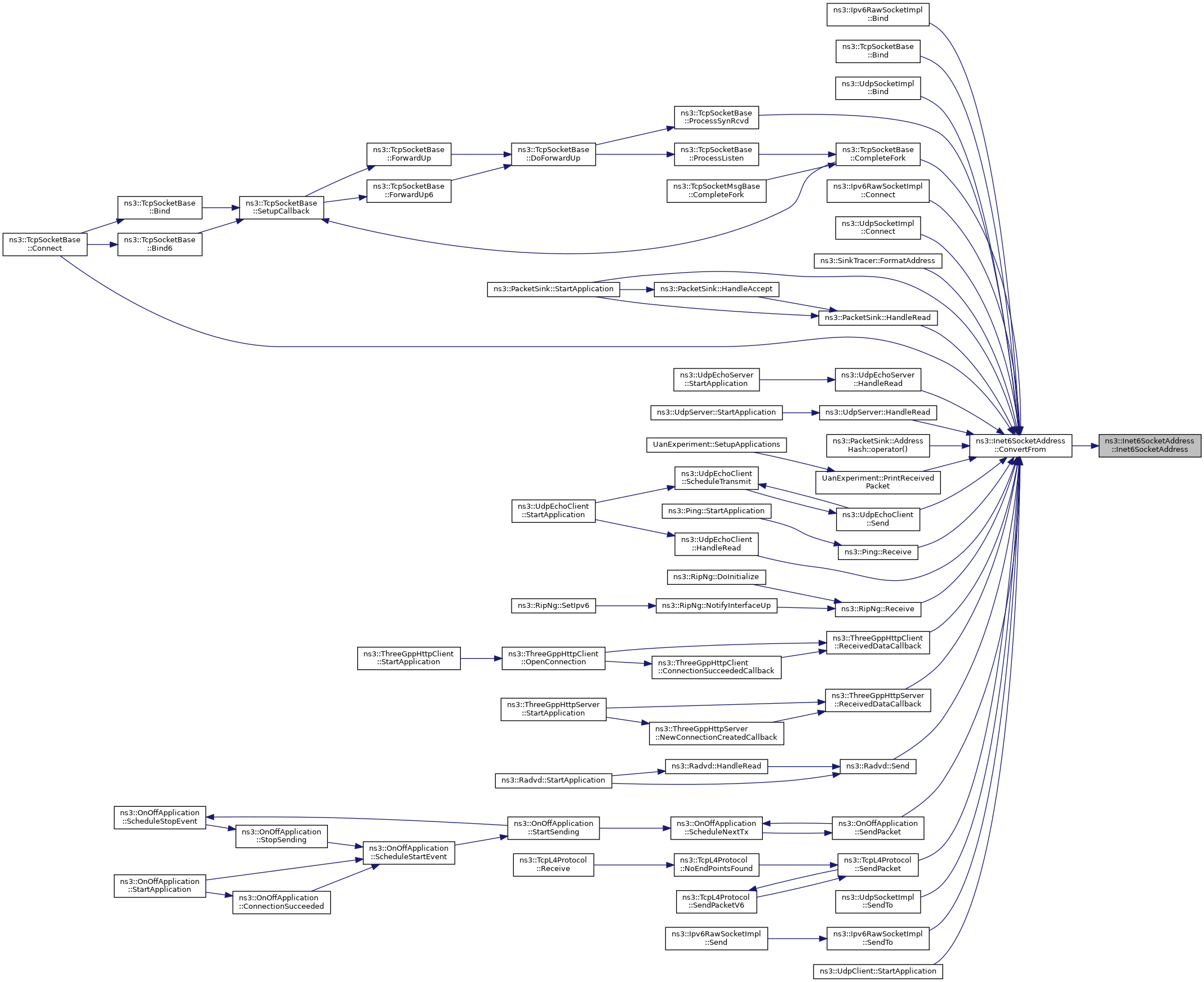 Referenced by ns3::Ipv6RawSocketImpl::Bind(), ns3::TcpSocketBase::Bind(), ns3::UdpSocketImpl::Bind(), ns3::TcpSocketBase::CompleteFork(), ns3::Ipv6RawSocketImpl::Connect(), ns3::TcpSocketBase::Connect(), ns3::UdpSocketImpl::Connect(), ns3::SinkTracer::FormatAddress(), ns3::PacketSink::HandleRead(), ns3::UdpEchoClient::HandleRead(), ns3::UdpEchoServer::HandleRead(), ns3::UdpServer::HandleRead(), ns3::PacketSink::AddressHash::operator()(), UanExperiment::PrintReceivedPacket(), ns3::TcpSocketBase::ProcessSynRcvd(), ns3::Ping::Receive(), ns3::RipNg::Receive(), ns3::ThreeGppHttpClient::ReceivedDataCallback(), ns3::ThreeGppHttpServer::ReceivedDataCallback(), ns3::UdpEchoClient::Send(), ns3::Radvd::Send(), ns3::OnOffApplication::SendPacket(), ns3::TcpL4Protocol::SendPacket(), ns3::UdpSocketImpl::SendTo(), ns3::Ipv6RawSocketImpl::SendTo(), ns3::PacketSink::StartApplication(), and ns3::UdpClient::StartApplication().