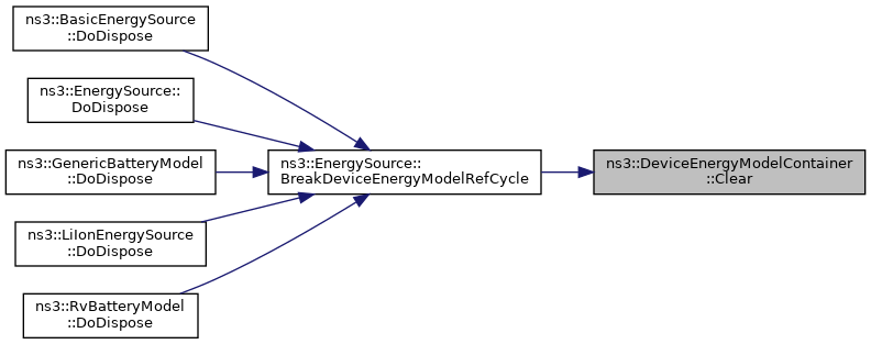Here is the caller graph for this function:| void ns3::DeviceEnergyModelContainer::Clear | ( | ) |