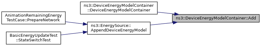 Here is the call graph for this function:| void ns3::DeviceEnergyModelContainer::Add | ( | DeviceEnergyModelContainer | container | ) |
