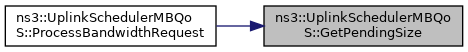 Here is the call graph for this function:| uint32_t ns3::UplinkSchedulerMBQoS::GetPendingSize | ( | ServiceFlow * | serviceFlow | ) |