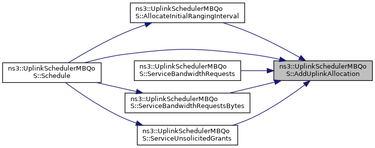 References AddUplinkAllocation(), ns3::ServiceFlowRecord::GetBacklogged(), ns3::UplinkScheduler::GetBs(), ns3::ServiceFlow::GetConnection(), ns3::ServiceFlowRecord::GetGrantedBandwidth(), ns3::ServiceFlow::GetRecord(), ns3::ServiceFlowRecord::GetRequestedBandwidth(), ns3::ServiceFlow::GetSchedulingTypeStr(), ns3::ServiceFlow::GetSduSize(), ns3::ServiceFlow::GetSfid(), ns3::ServiceFlowRecord::IncreaseBacklogged(), ns3::Simulator::Now(), NS_LOG_DEBUG, ns3::ServiceFlowRecord::SetBacklogged(), ns3::ServiceFlowRecord::SetBwSinceLastExpiry(), ns3::ServiceFlowRecord::SetLastGrantTime(), and ns3::ServiceFlowRecord::UpdateGrantedBandwidth().