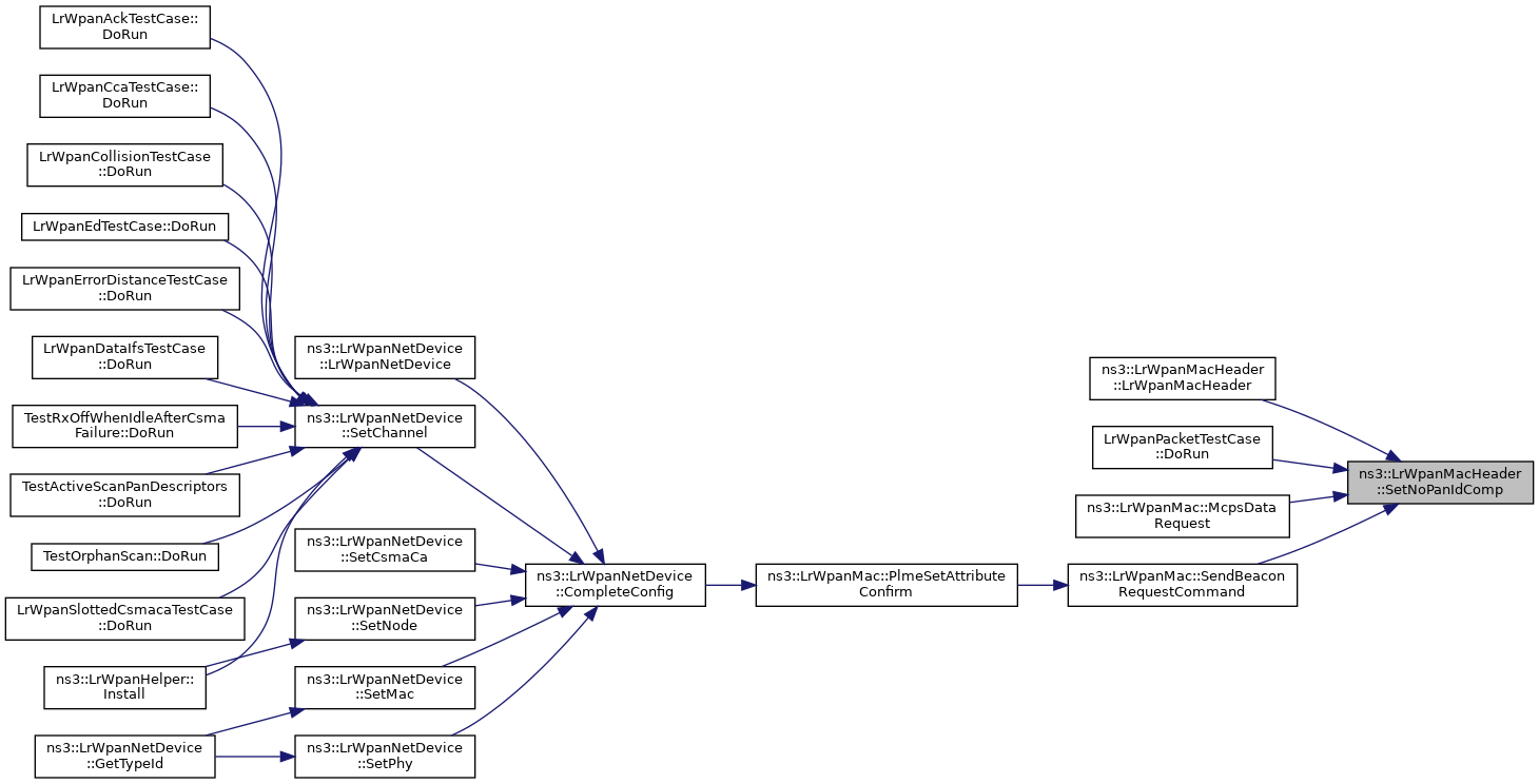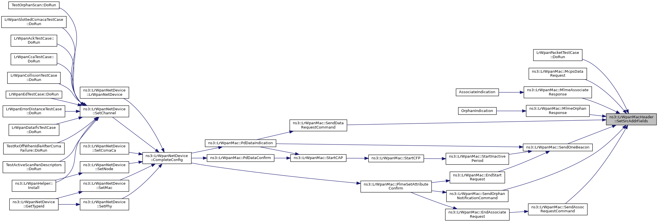 Here is the caller graph for this function:| void ns3::LrWpanMacHeader::SetSrcAddrFields | ( | uint16_t | panId, |