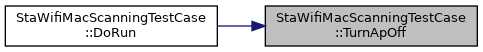 References ns3::NodeContainer::Get(), ns3::Node::GetDevice(), m_associatedApBssid, nodes, NS_TEST_ASSERT_MSG_EQ, ns3::Seconds(), Setup(), TurnApOff(), and TurnBeaconGenerationOn().