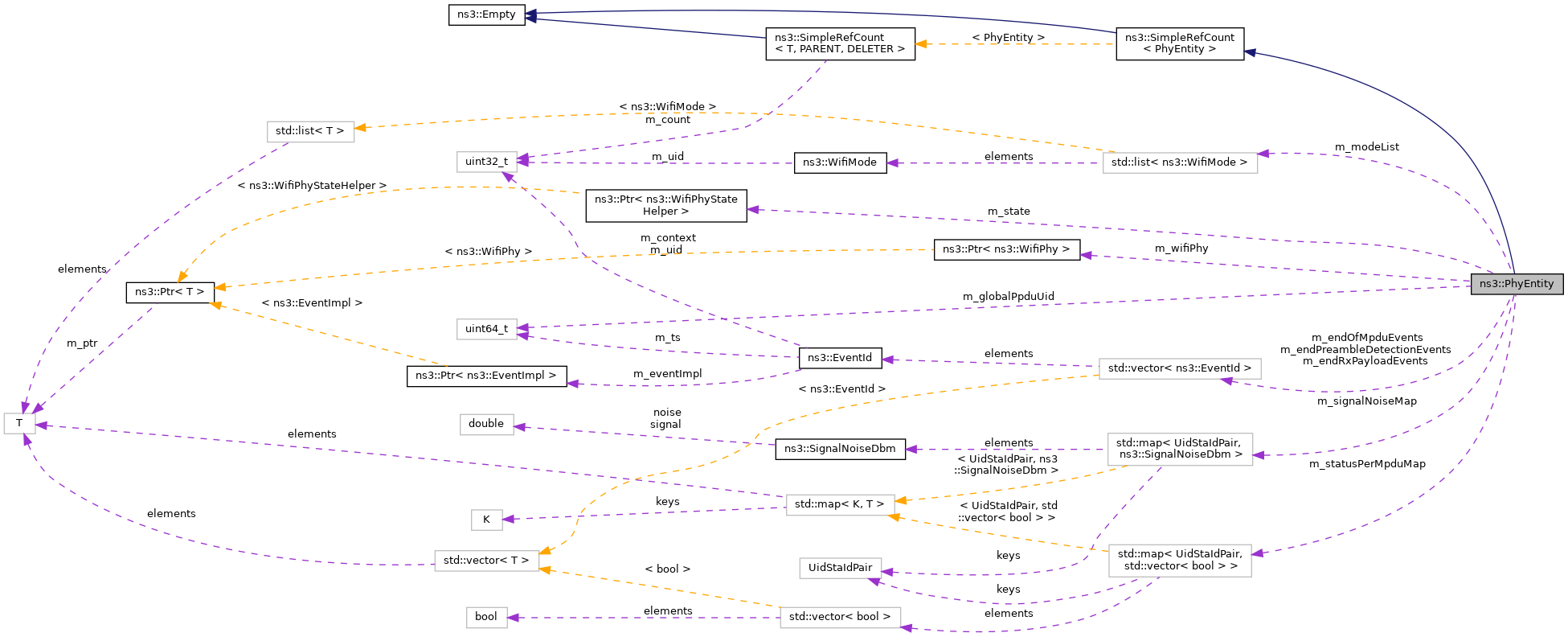 Collaboration diagram for ns3::PhyEntity:Classes | |