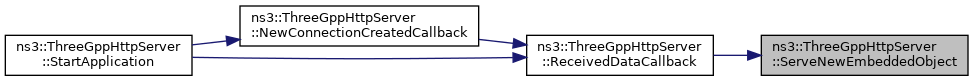 The size of the object is randomly determined by ThreeGppHttpVariables. Fires the EmbeddedObject trace source. It then immediately triggers ServeFromTxBuffer() to send the object.