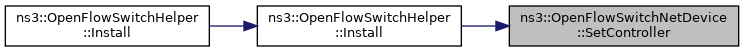 Here is the call graph for this function:| void ns3::OpenFlowSwitchNetDevice::SetController | ( | Ptr< ofi::Controller > | c | ) |