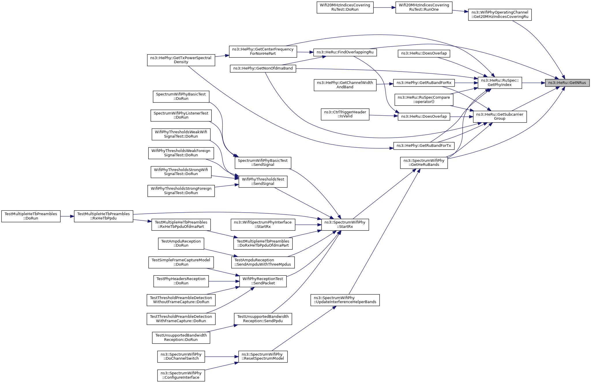 Referenced by FindOverlappingRu(), ns3::WifiPhyOperatingChannel::Get20MHzIndicesCoveringRu(), ns3::SpectrumWifiPhy::GetHeRuBands(), ns3::HeRu::RuSpec::GetPhyIndex(), and GetSubcarrierGroup().