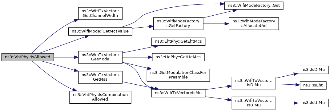 References ns3::WifiTxVector::GetChannelWidth(), ns3::WifiMode::GetMcsValue(), ns3::WifiTxVector::GetMode(), ns3::WifiTxVector::GetNss(), and IsCombinationAllowed().