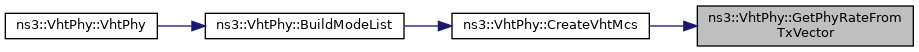 References ns3::WifiTxVector::GetChannelWidth(), ns3::WifiTxVector::GetGuardInterval(), ns3::WifiMode::GetMcsValue(), ns3::WifiTxVector::GetMode(), ns3::WifiTxVector::GetNss(), and GetPhyRate().