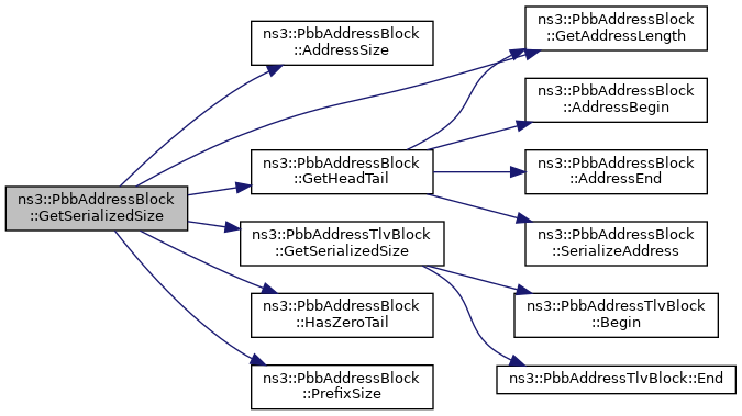 Here is the call graph for this function:| int ns3::PbbAddressBlock::TlvSize | ( | ) | const |