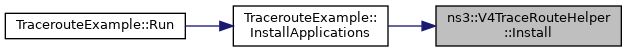 Here is the caller graph for this function:| ApplicationContainer ns3::V4TraceRouteHelper::Install | ( | Ptr< Node > | node | ) | const |