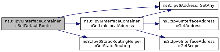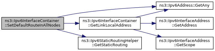 Here is the call graph for this function:| void ns3::Ipv6InterfaceContainer::SetDefaultRouteInAllNodes | ( | Ipv6Address | routerAddr | ) |