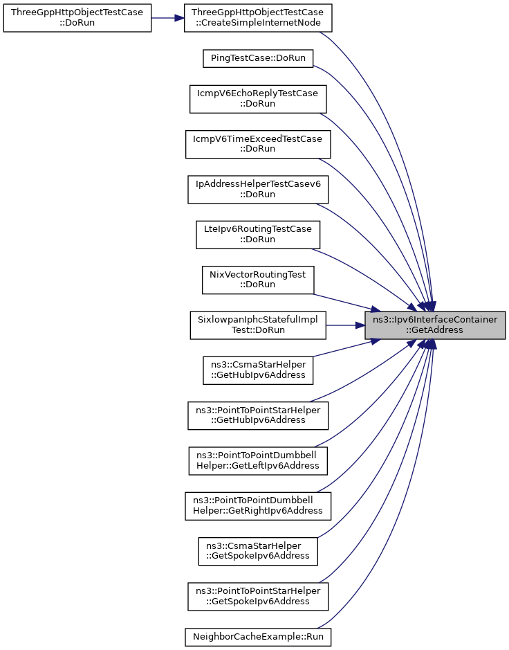 Referenced by ThreeGppHttpObjectTestCase::CreateSimpleInternetNode(), PingTestCase::DoRun(), IcmpV6EchoReplyTestCase::DoRun(), IcmpV6TimeExceedTestCase::DoRun(), IpAddressHelperTestCasev6::DoRun(), LteIpv6RoutingTestCase::DoRun(), NixVectorRoutingTest::DoRun(), SixlowpanIphcStatefulImplTest::DoRun(), ns3::CsmaStarHelper::GetHubIpv6Address(), ns3::PointToPointStarHelper::GetHubIpv6Address(), ns3::PointToPointDumbbellHelper::GetLeftIpv6Address(), ns3::PointToPointDumbbellHelper::GetRightIpv6Address(), ns3::CsmaStarHelper::GetSpokeIpv6Address(), ns3::PointToPointStarHelper::GetSpokeIpv6Address(), and NeighborCacheExample::Run().