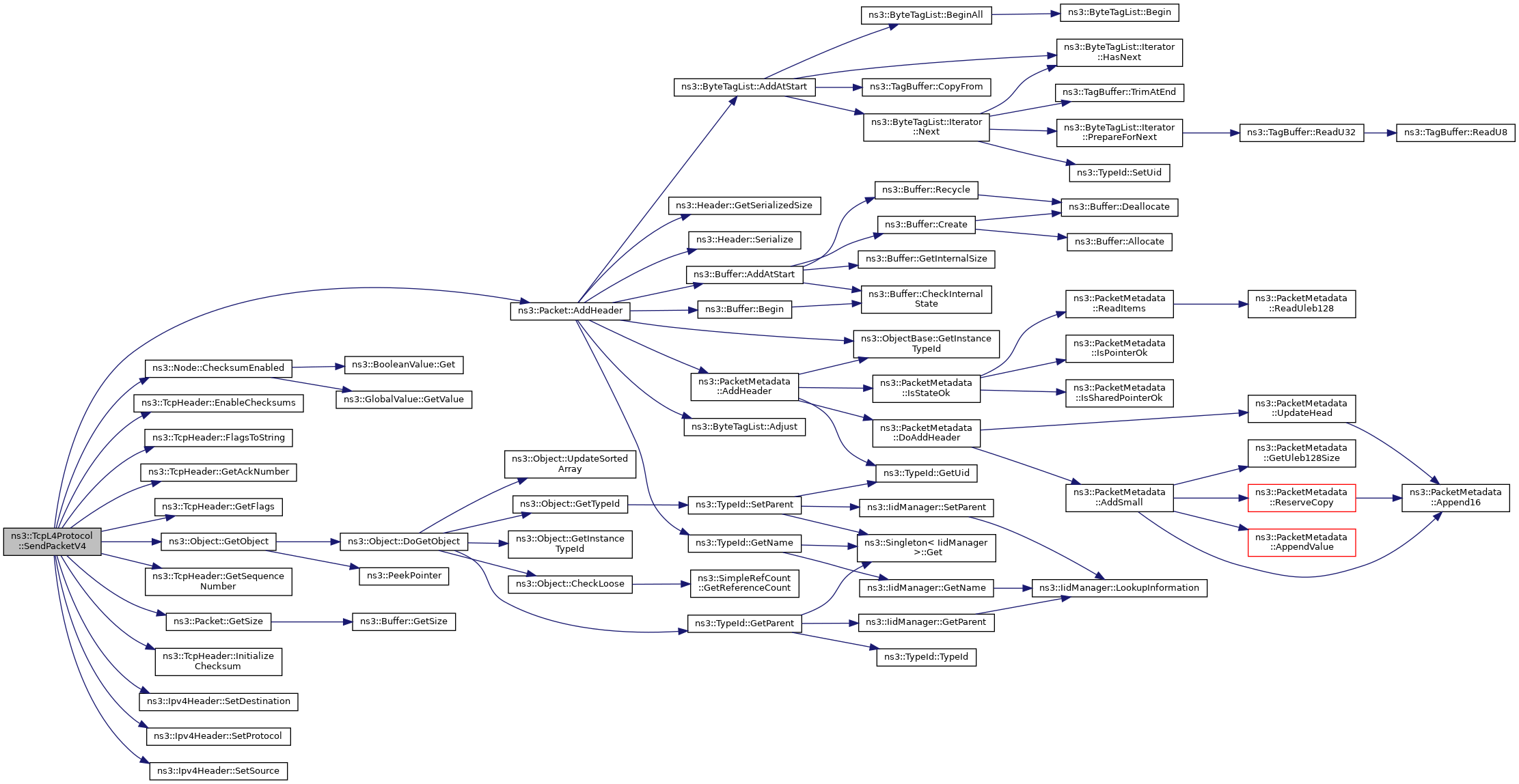 References ns3::Packet::AddHeader(), ns3::Node::ChecksumEnabled(), ns3::TcpHeader::EnableChecksums(), ns3::TcpHeader::FlagsToString(), ns3::TcpHeader::GetAckNumber(), ns3::TcpHeader::GetFlags(), ns3::Ipv6Address::GetIpv4MappedAddress(), ns3::Object::GetObject(), ns3::TcpHeader::GetSequenceNumber(), ns3::Packet::GetSize(), ns3::TcpHeader::InitializeChecksum(), ns3::Ipv6Address::IsIpv4MappedAddress(), m_downTarget6, m_node, NS_FATAL_ERROR, NS_LOG_ERROR, NS_LOG_FUNCTION, NS_LOG_LOGIC, PROT_NUMBER, SendPacket(), ns3::Ipv6Header::SetDestination(), ns3::Ipv6Header::SetNextHeader(), and ns3::Ipv6Header::SetSource().