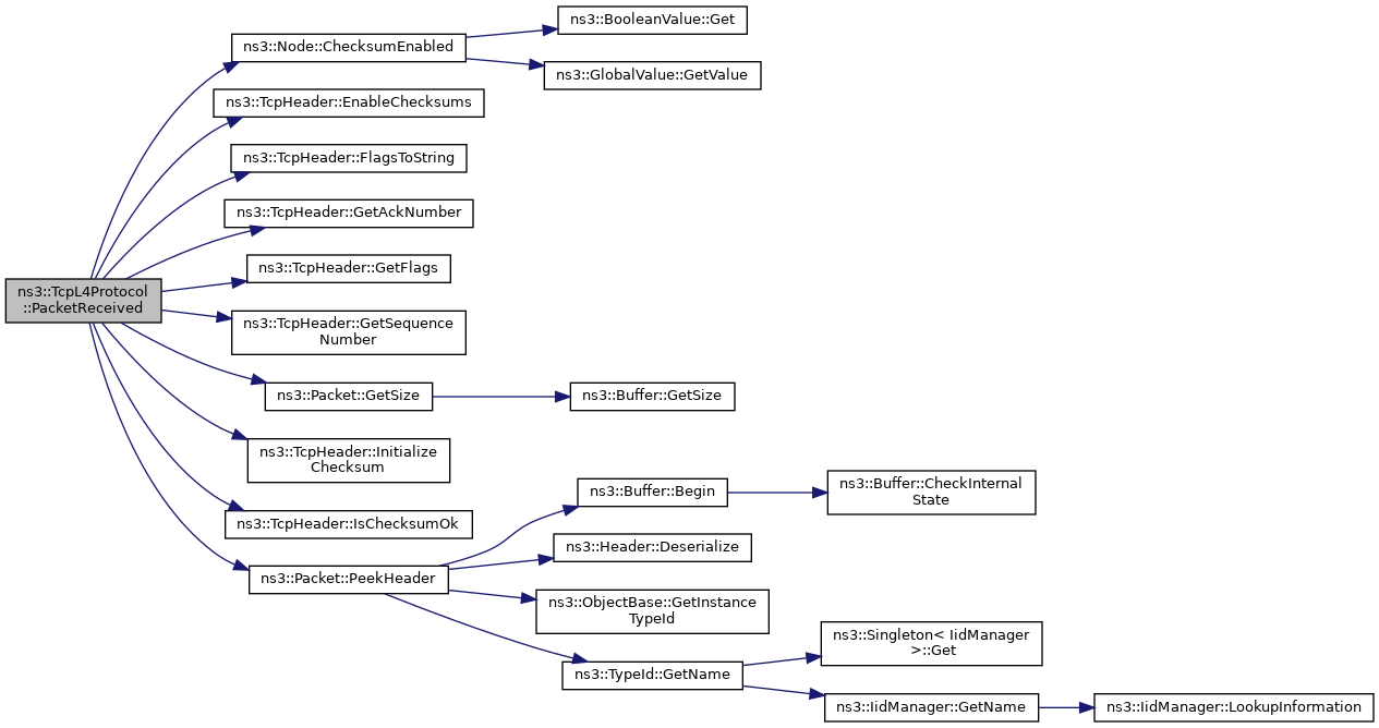 References ns3::Node::ChecksumEnabled(), ns3::TcpHeader::EnableChecksums(), ns3::TcpHeader::FlagsToString(), ns3::TcpHeader::GetAckNumber(), ns3::TcpHeader::GetFlags(), ns3::TcpHeader::GetSequenceNumber(), ns3::Packet::GetSize(), ns3::TcpHeader::InitializeChecksum(), ns3::TcpHeader::IsChecksumOk(), NS_LOG_FUNCTION, NS_LOG_INFO, NS_LOG_LOGIC, ns3::Packet::PeekHeader(), PROT_NUMBER, ns3::IpL4Protocol::RX_CSUM_FAILED, and ns3::IpL4Protocol::RX_OK.