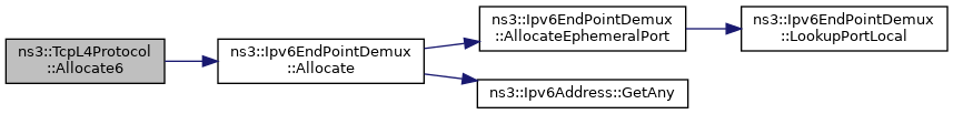 | Ipv6EndPoint * | Allocate6 (Ptr< NetDevice > boundNetDevice, Ipv6Address localAddress, uint16_t localPort, Ipv6Address peerAddress, uint16_t peerPort) |