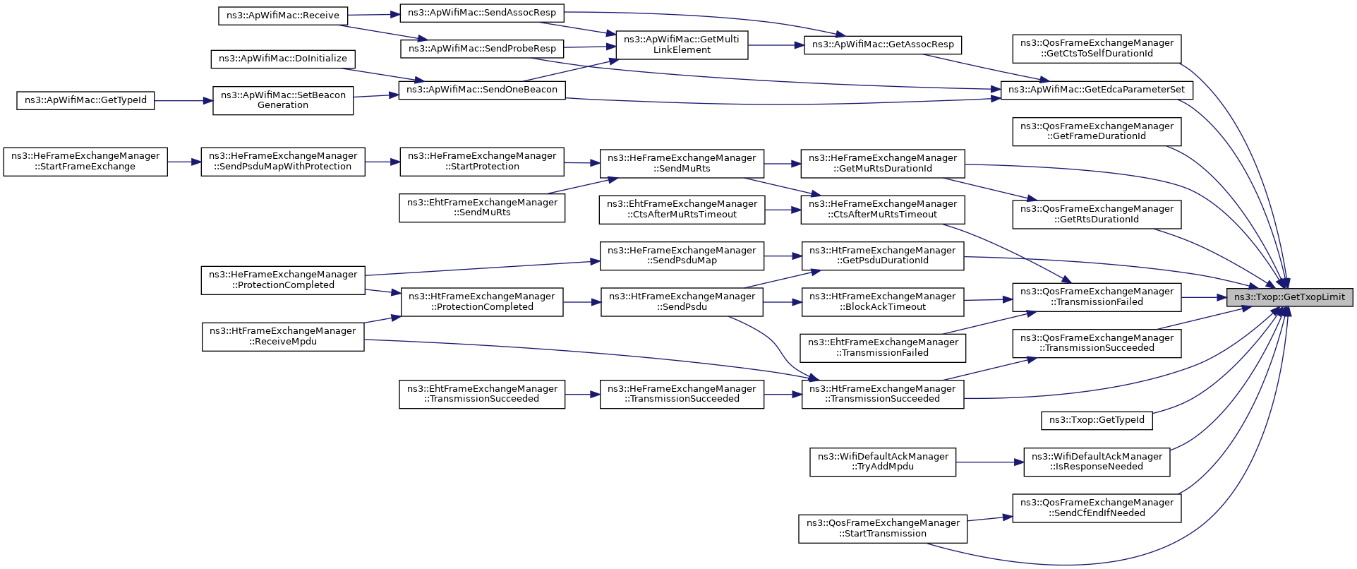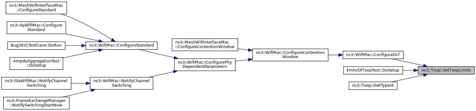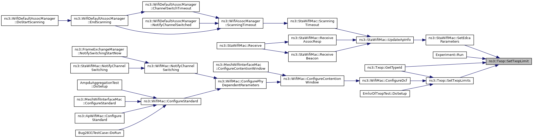 Here is the caller graph for this function:| void ns3::Txop::SetTxopLimit | ( | Time | txopLimit, |