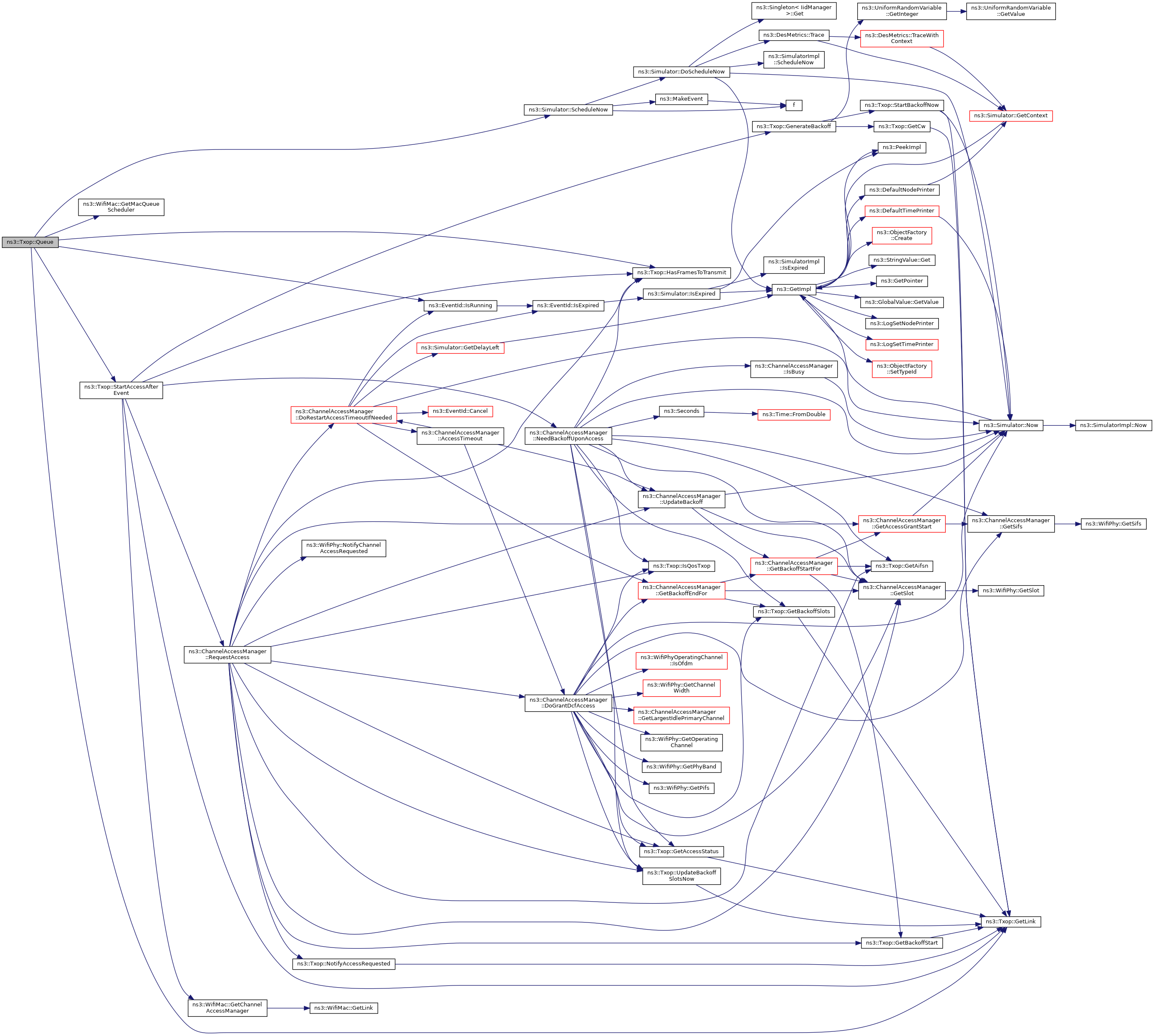 Referenced by ns3::QosTxop::QosTxop(), ns3::QosTxop::AssignSequenceNumber(), ns3::QosTxop::CompleteMpduTx(), DoDispose(), ns3::QosTxop::GetQosQueueSize(), GetWifiMacQueue(), ns3::QosTxop::GotAddBaResponse(), HasFramesToTransmit(), ns3::QosTxop::HasFramesToTransmit(), ns3::QosTxop::NotifyChannelReleased(), NotifyOff(), ns3::QosTxop::PeekNextMpdu(), Queue(), and SetDroppedMpduCallback().