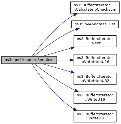 References ns3::Buffer::Iterator::CalculateIpChecksum(), DONT_FRAGMENT, ns3::Ipv4Address::Get(), m_calcChecksum, m_destination, m_flags, m_fragmentOffset, m_identification, m_payloadSize, m_protocol, m_source, m_tos, m_ttl, MORE_FRAGMENTS, ns3::Buffer::Iterator::Next(), NS_LOG_FUNCTION, NS_LOG_LOGIC, two-ray-to-three-gpp-ch-calibration::start, ns3::Buffer::Iterator::WriteHtonU16(), ns3::Buffer::Iterator::WriteHtonU32(), ns3::Buffer::Iterator::WriteU16(), and ns3::Buffer::Iterator::WriteU8().