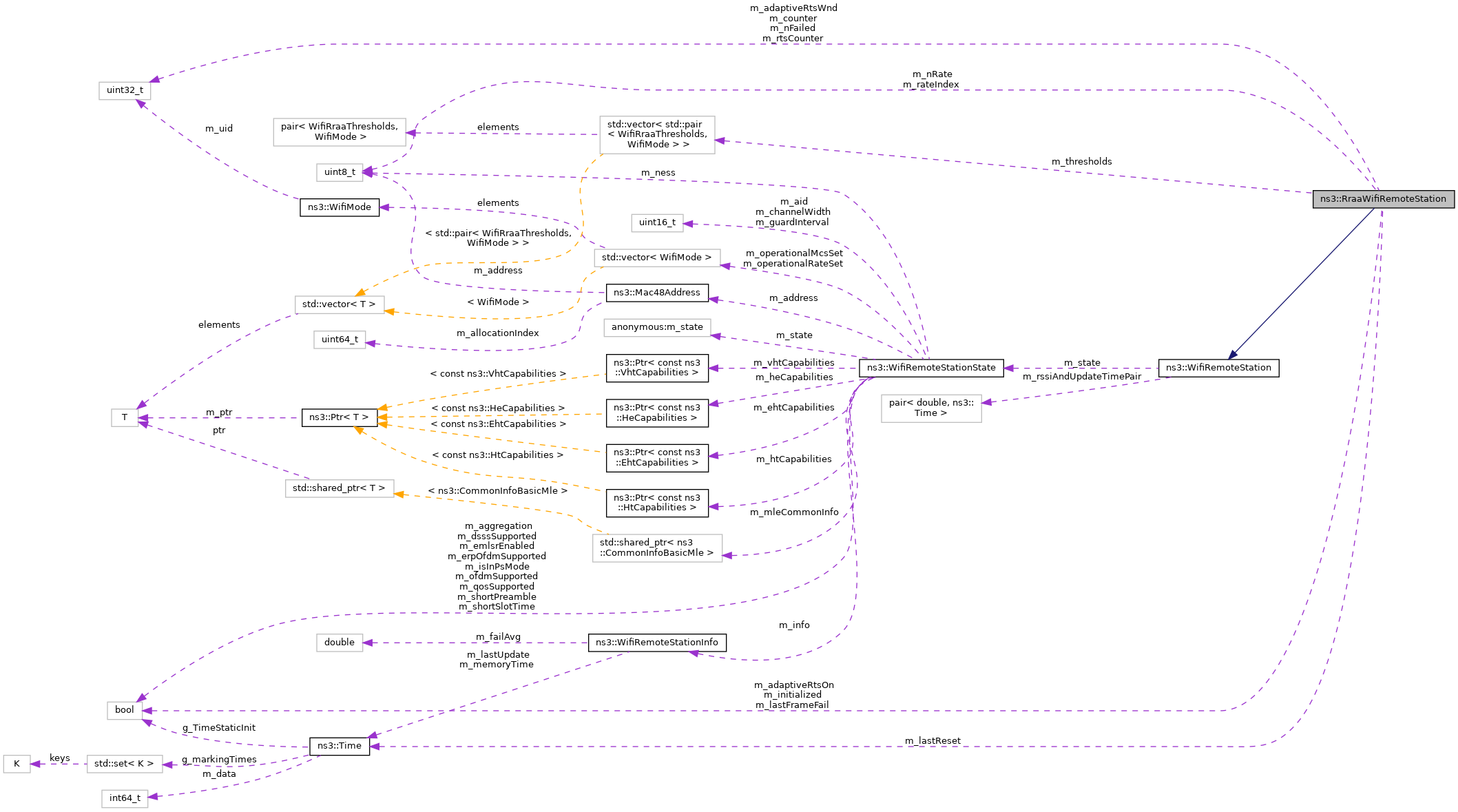 Collaboration diagram for ns3::RraaWifiRemoteStation:Public Attributes | |