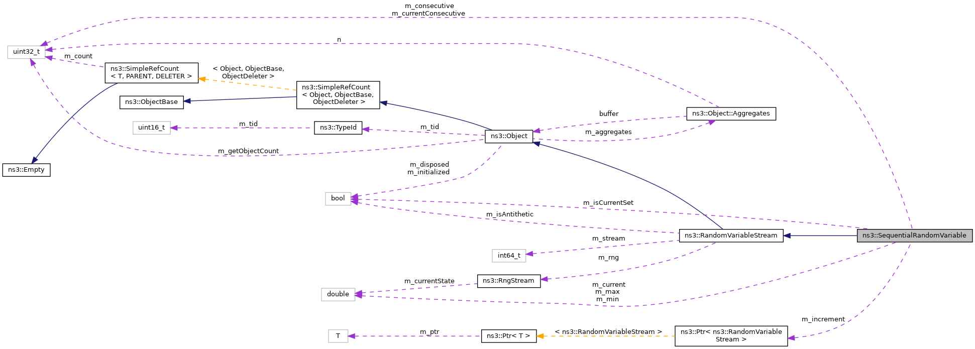 Inheritance diagram for ns3::SequentialRandomVariable: