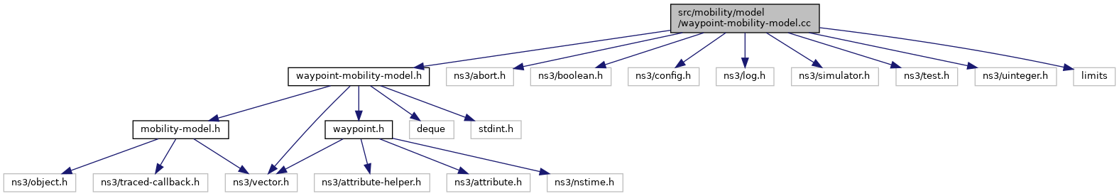 Include dependency graph for waypoint-mobility-model.cc:Go to the source code of this file.