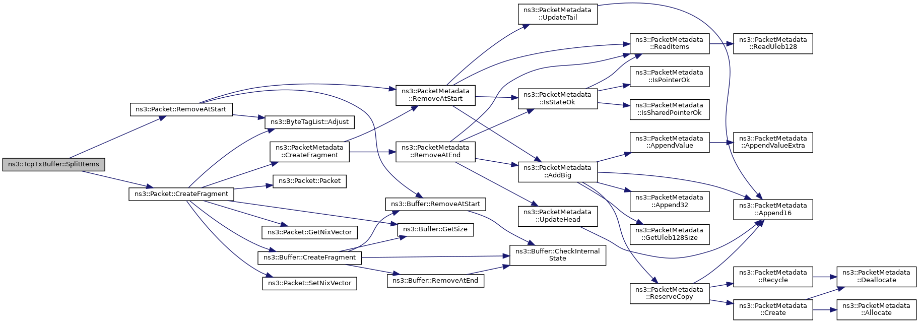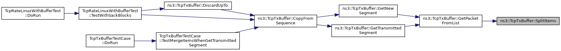 Here is the caller graph for this function:Split one TcpTxItem.