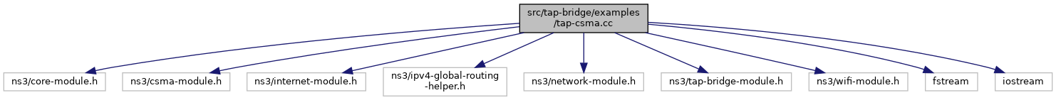 #include "ns3/core-module.h"#include "ns3/csma-module.h"#include "ns3/internet-module.h"#include "ns3/ipv4-global-routing-helper.h"#include "ns3/network-module.h"#include "ns3/tap-bridge-module.h"#include "ns3/wifi-module.h"#include <fstream>#include <iostream>