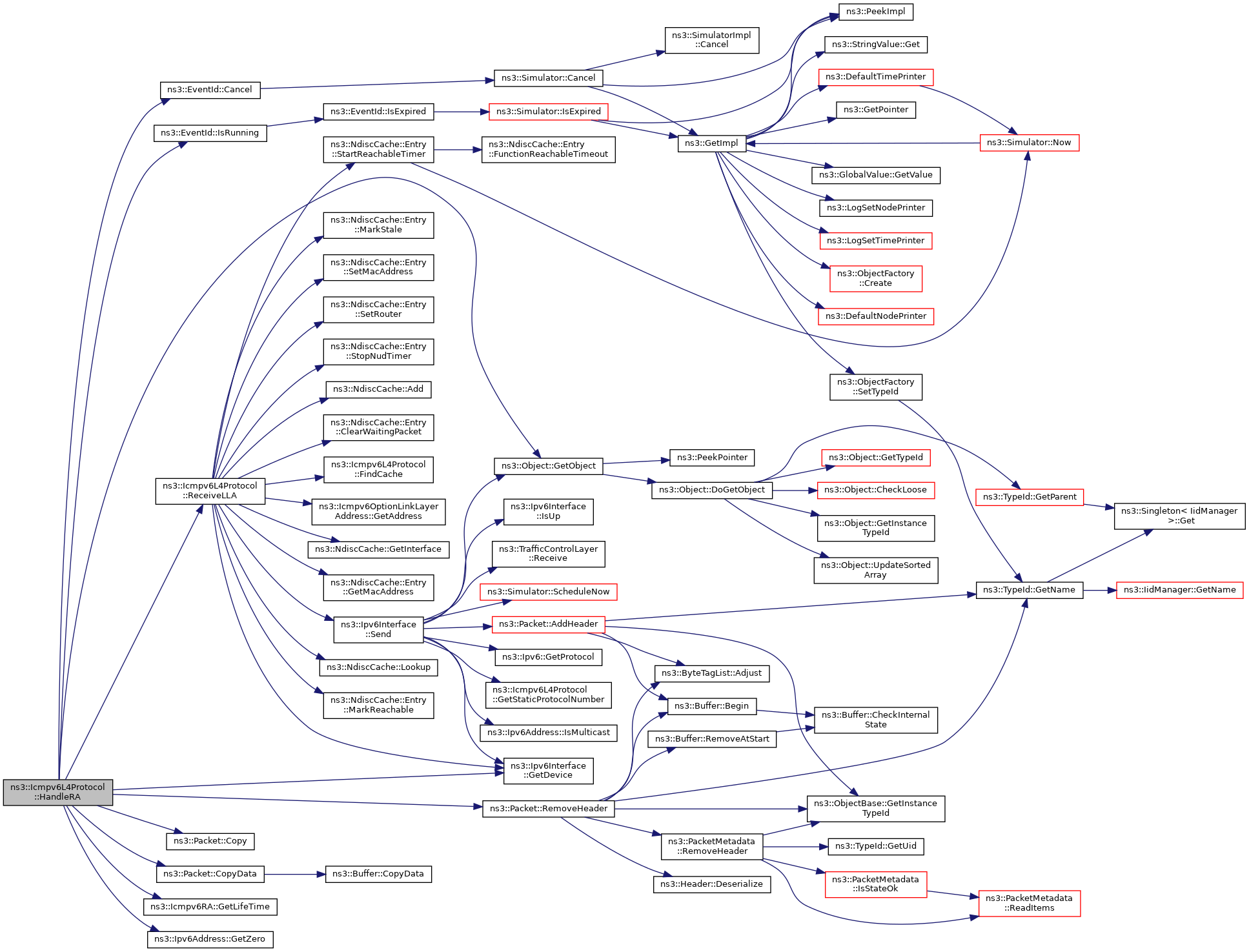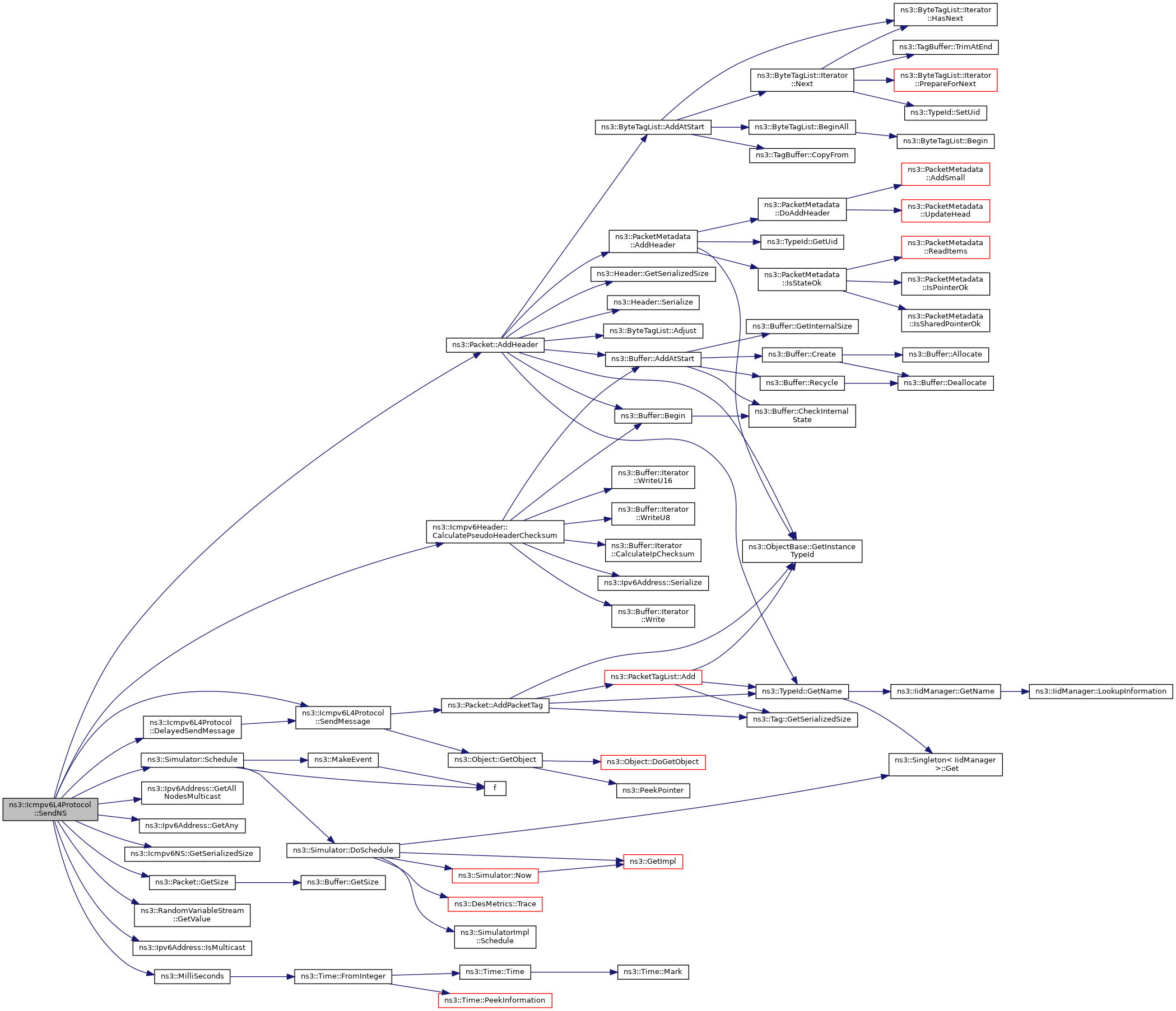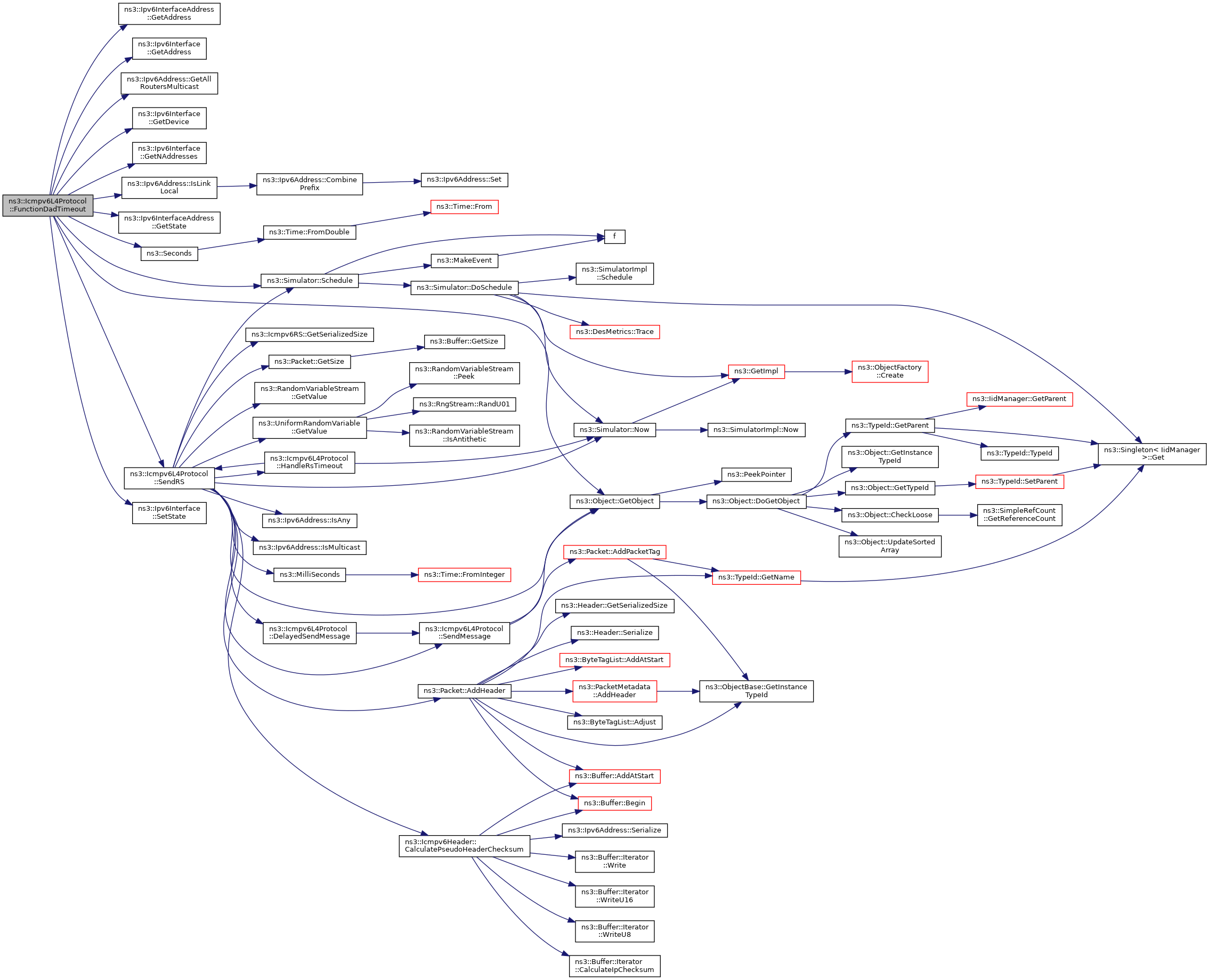 References ns3::Packet::AddHeader(), ns3::Icmpv6Header::CalculatePseudoHeaderChecksum(), DelayedSendMessage(), ns3::Object::GetObject(), ns3::Icmpv6RS::GetSerializedSize(), ns3::Packet::GetSize(), ns3::RandomVariableStream::GetValue(), ns3::UniformRandomVariable::GetValue(), HandleRsTimeout(), ns3::Ipv6Address::IsAny(), ns3::Ipv6Address::IsMulticast(), m_handleRsTimeoutEvent, m_node, m_rsInitialRetransmissionTime, m_rsMaxRetransmissionTime, m_rsPrevRetransmissionTimeout, m_rsRetransmissionCount, m_rsRetransmissionJitter, m_solicitationJitter, ns3::MilliSeconds(), ns3::Simulator::Now(), NS_LOG_FUNCTION, NS_LOG_INFO, NS_LOG_LOGIC, PROT_NUMBER, ns3::Simulator::Schedule(), and SendMessage().