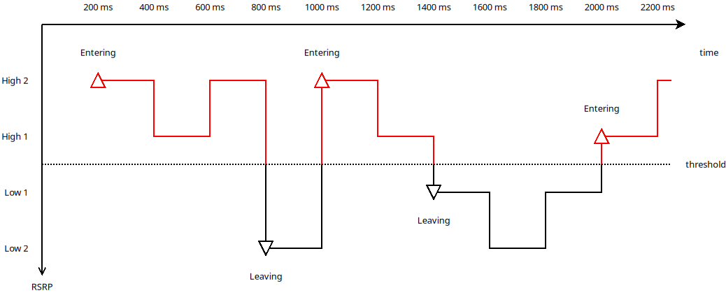 In this scenario, the UE is initially placed near to the eNB, and on the following instances above conditions are verified against the expected outcome.